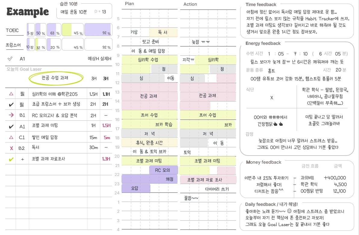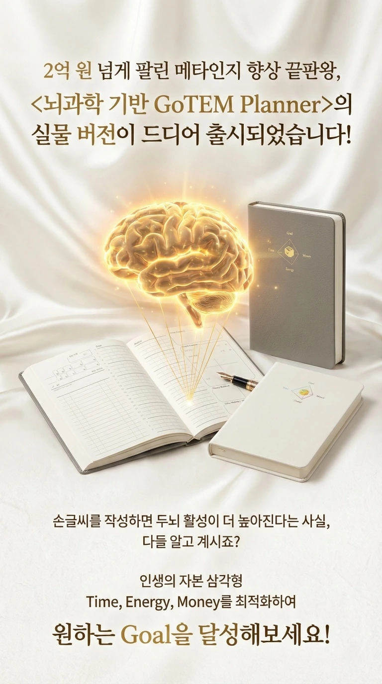 평소 생산성을 높이고, 더 체계적이고 효율적인 삶을 살고자 노력했지만 어디서부터 시작해야 할지 막막했던 저에게, 이 제품은 정말 '치트키' 같은 존재였습니다. 와디즈에서 이 프로젝트를 처음 보고 큰 기대를 가지고 펀딩했는데, 결과적으로 제 기대 이상을 충족시켜줬습니다. 현재 저는 노션과 굿노트를 병행하면서 사용하고 있고, 나에게 맞는걸로 굳혀가려고 합니다. 우선, 서울대 뇌과학자의 전문적인 지식이 담겨 있다는 점에서 신뢰감이…