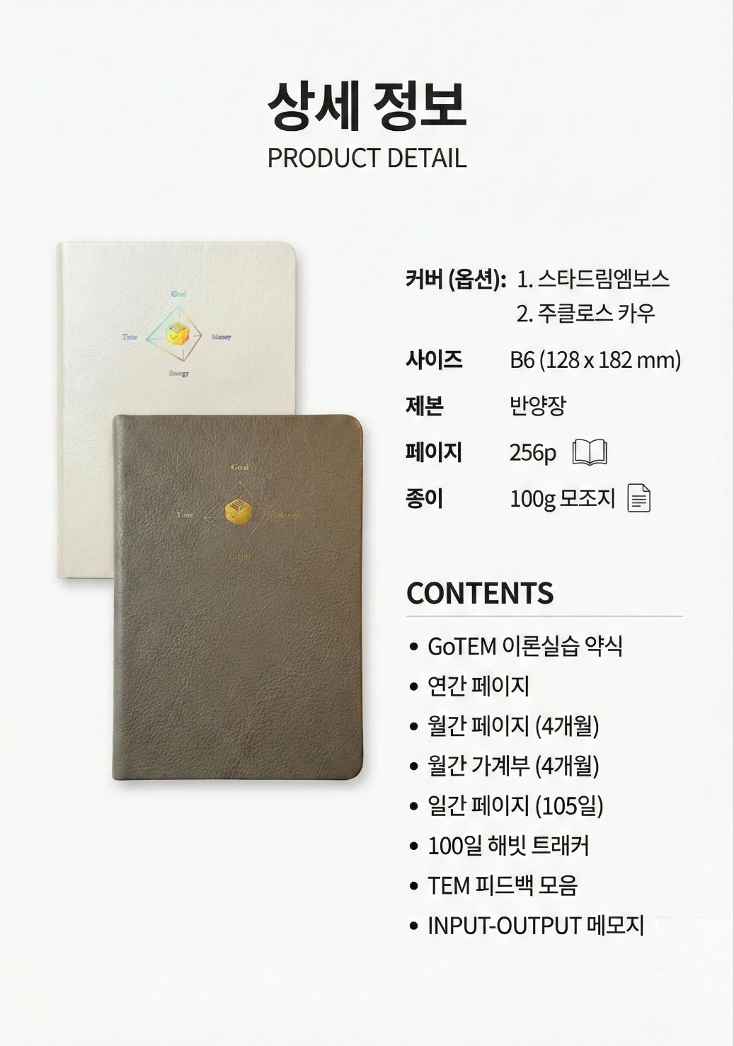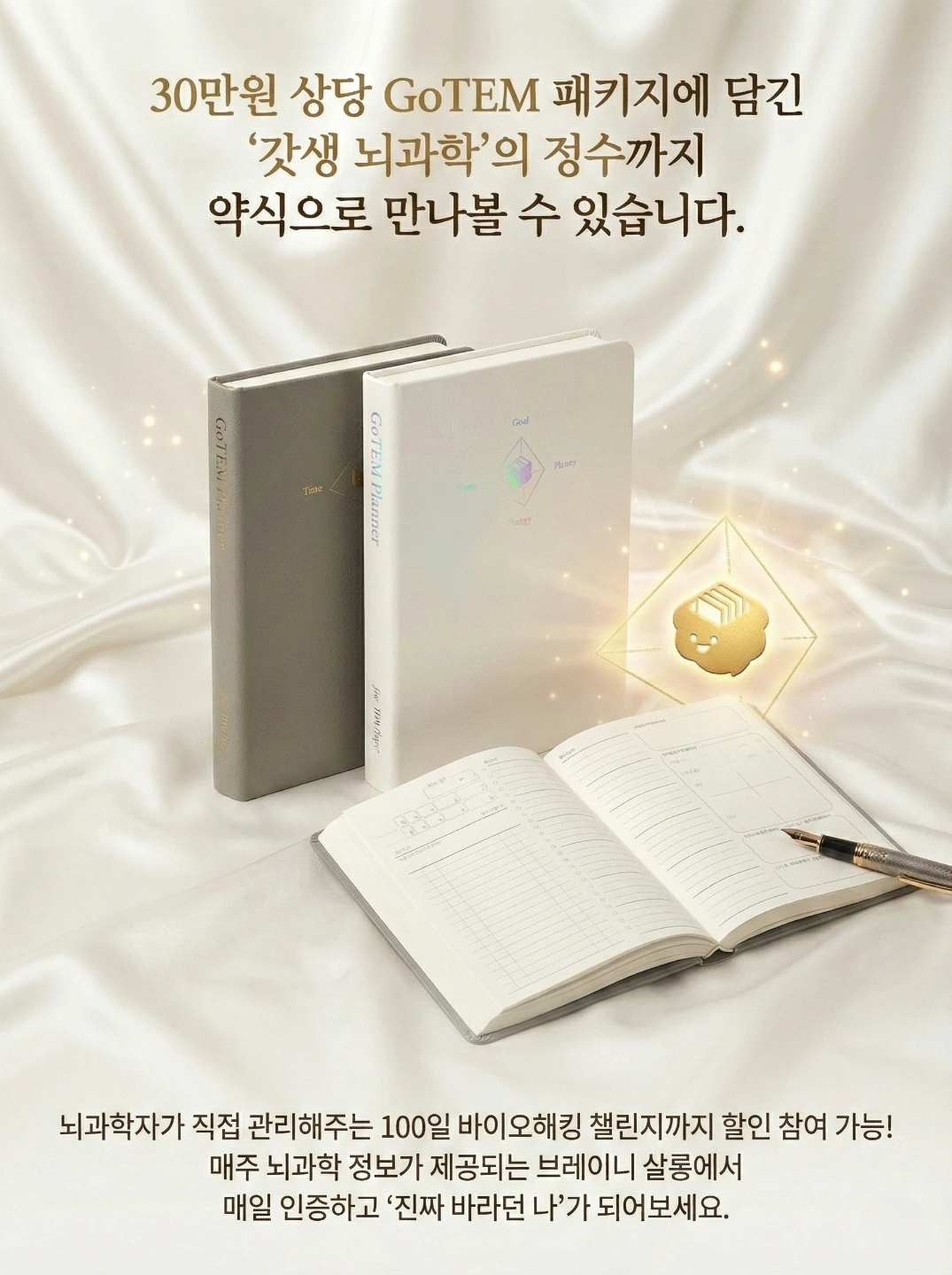 과거 타 펀딩을 통해서 GO-TEM 플래너와 브레이니카드를 이용했었습니다. 그때 만족스러웠고 와디즈에서는 이론서가 추가되고 더 풍부한 내용들이 포함되어 있어서 펀딩했습니다. 평상시 뇌과학에 관심이 많아서 관련도서들을 읽어봤는데 막상 제대로 적용해서 실천하기가 쉽지 않았습니다. 이번 펀딩 상품에 포함된 이론서들을 바탕으로 실천을 구체적으로 할 수 있었고 플래너가 정말 유용했어요! 그리고 갓생커뮤니티를 통해서 100일 챌린지…